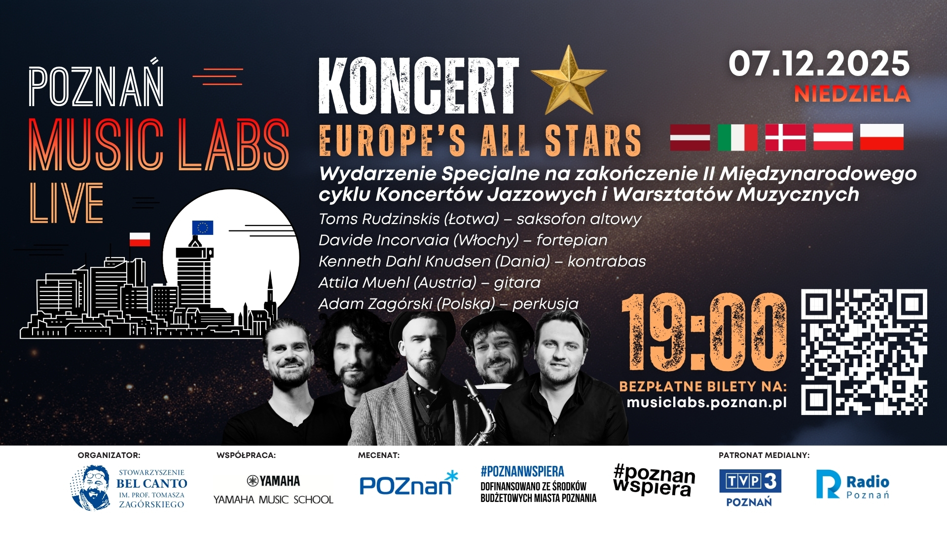 Szkołą Muzyczną Yamaha w Poznaniu. Cykl koncertów jazzowych i warsztatów muzycznych wspierany jest od Września do Grudnia 2025 roku ze środków Samorządu Województwa Wiekopolskiego oraz Powiatu Poznańskiego.